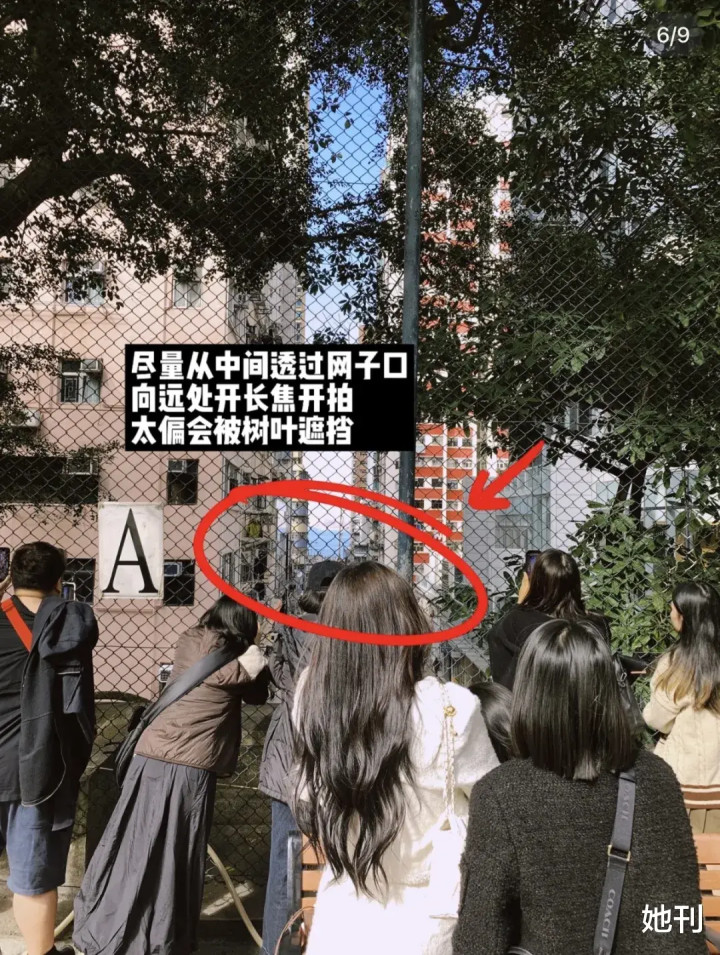 目下,许多搭客拥堵在围栏边,而所谓的氛围感街景,只是一个透过铁丝网、诈欺长焦镜头才智拍摄出的拍照点。