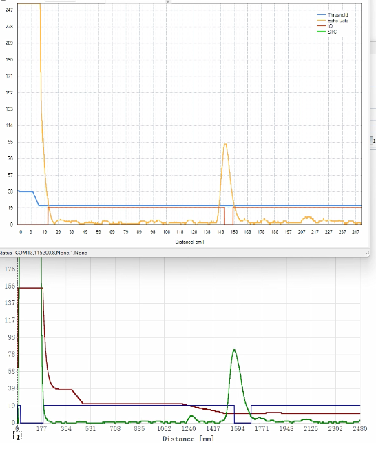图3:中近距:1m iND24003更高的回波高度 更好的SNR
