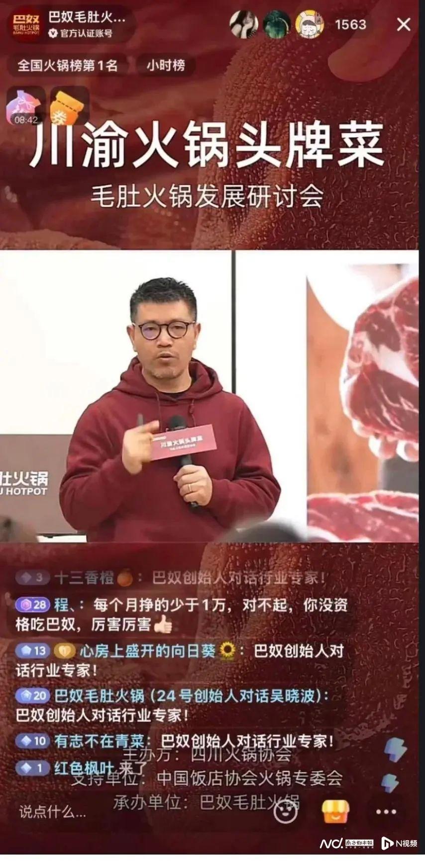 宣称“月薪5000元就不要吃巴奴了”,巴奴毛肚暖锅创举东说念主杜中兵直播中的言论激发争议。
