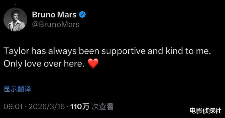 跟着公论的束缚发酵,两边粉丝在网络上掀翻了骂战,眼看事情越闹越大,3月16日,火星哥在社媒发文回报了此事,他在社媒上写说念:“霉霉一直齐很复古我,对我也一直很好,我这边独一爱。”随后还补了一句:“在这些APP上传播爱吧!”