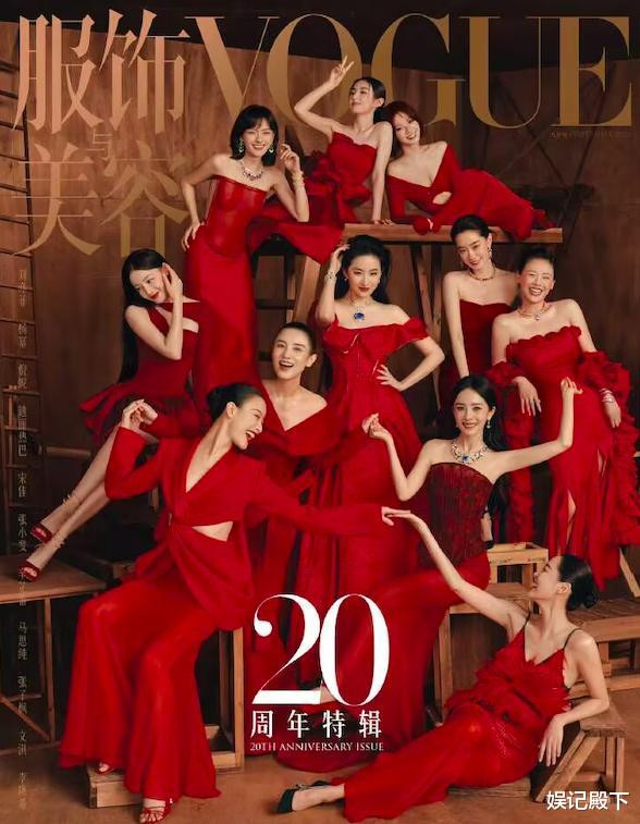 值得一提的是辛芷蕾这次的这个获奖时期点有些过于白色恐怖了,因为就在前一天vogue二十周年女演员群像封面刚刚公布出来。