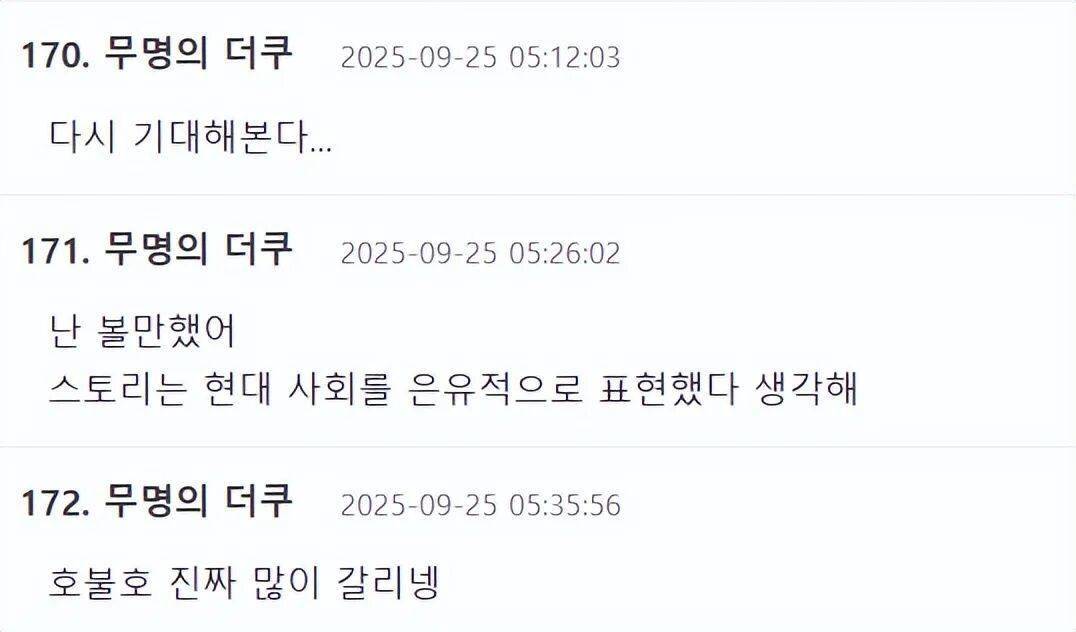 可是,这个近乎完满的专科评价,却在韩国脉土聚积上激发了一场口碑拉锯战。有东谈主满怀期待,也有东谈主直言“看不懂”“不合味”。