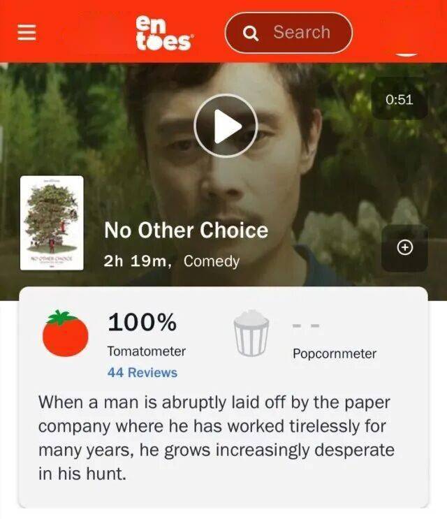 韩国闻名女演员孙艺珍联袂导演朴赞郁、影帝李秉宪带来的新作《无可怎样》,成了2025年秋季档最受争议的焦点。这部影片8月底在威尼斯电影节首映亮相后,于9月24日淡雅登陆韩国院线,并在闻名影评网站“烂番茄”上拿下开局100%的惊艳评分——老成,这还仅仅基于专科影评东谈主的“番茄计”分数,不代表日常不雅众。