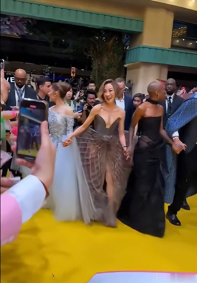杨紫琼我方冒昧也不介意,红毯上还跟穿格琳达cos服的粉丝合照,收场认为不外瘾,又掏出我方手机自拍,挺接地气的。