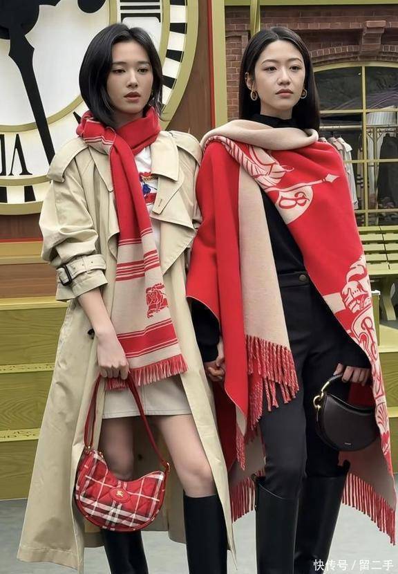 一个一稔红白格子的外衣,另一个围着红色的领巾,真别说,他们俩站在一皆还真有点像过年回家省亲的小情侣呢。
