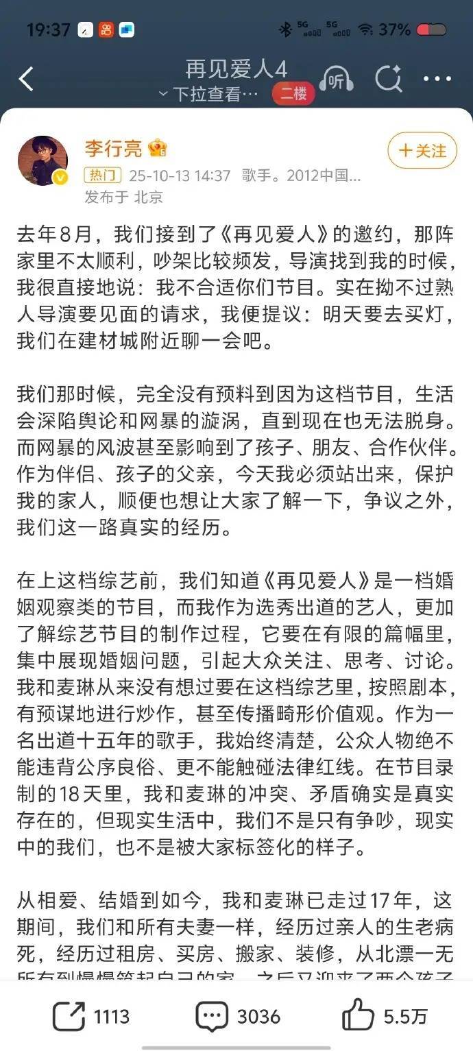 实质上,这场风云早有预兆。早在2025年10月13日,李行亮就曾发长文回话节目争议,称遭受了大范围网暴。他那时晒出了多张举报截图,傲气因为他参与节目,关连相助方如邀他演唱主题曲的剧组、播出平台等齐遭到了重大和投诉,他的生活照旧堕入了公论旋涡。如今在记录片中的自白,更像是这场执续风云的苦涩注脚。
