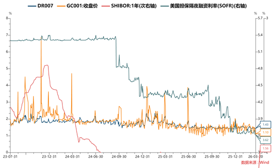 银行间市集资金面保管自如宽松格式,DR001加权平均利率微升并不绝徬徨于1.32%隔壁。匿名点击系统(X-repo)上,隔夜报价在1.30%供给依旧充盈;非银机构以存单及信用债为质押融入隔夜,报价在1.45%-1.47%隔壁。