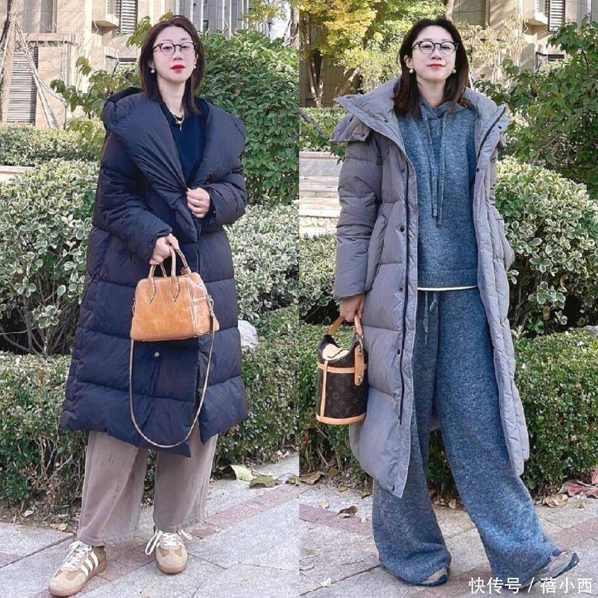其实这两组搭配能火,中枢等于太懂40+女生了,我们这个年岁,腰腹容易堆肉、胯宽腿粗这些问题皆很常见,选穿着既想遮过失,又不想穿得像“裹粽子”。“羽绒服+阔腿裤”就刚好搞定了这个矛盾,羽绒服选宽松点的H型或茧型,无用贴紧体格,当然就能遮住腰腹和肩背的肉肉,显瘦效劳很好。