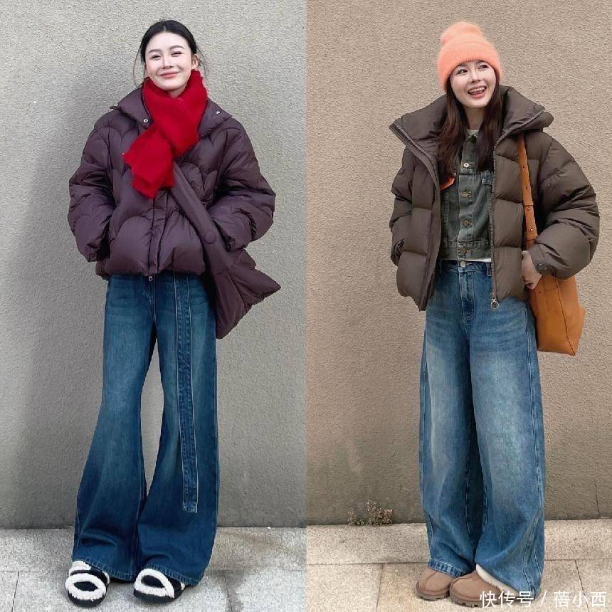 1,羽绒服搭配阔腿裤,遮肉显瘦不疲塌